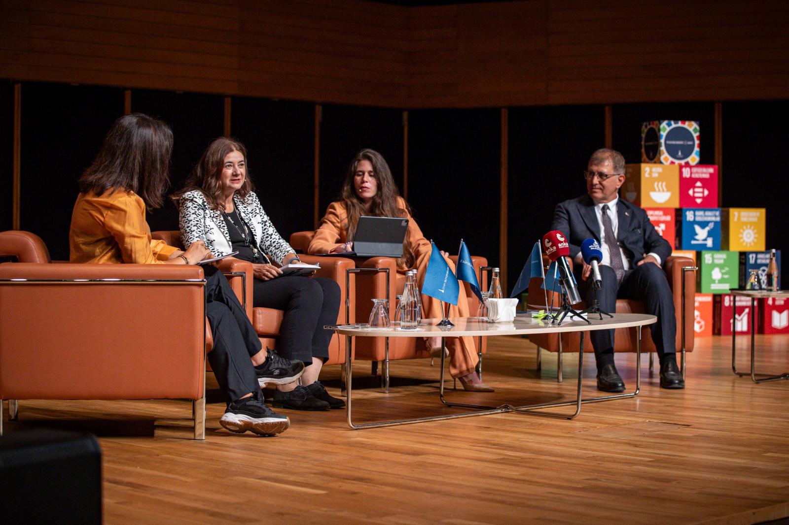 İzmir Büyükşehir Belediyesi'nin Kurumsal Sürdürülebilirlik Raporu tanıtım toplantısının ardından İzmir Büyükşehir Belediyesi'nden ekonomist Dr. Derya Altun moderatörlüğünde “Yerel Yönetimlerde Sürdürülebilirlik Politikaları ve Davranış Değişikliği” paneli yapıldı. Ahmed Adnan Saygun Sanat Merkezi’ndeki panele İzmir Büyükşehir Belediye Başkanı Dr. Cemil Tugay, Çeşme Belediye Başkanı Lal Denizli, ESİAD Yönetim Kurulu Üyesi Sürdürülebilirlik Yuvarlak Masası Başkanı Neşe Gök katıldı.