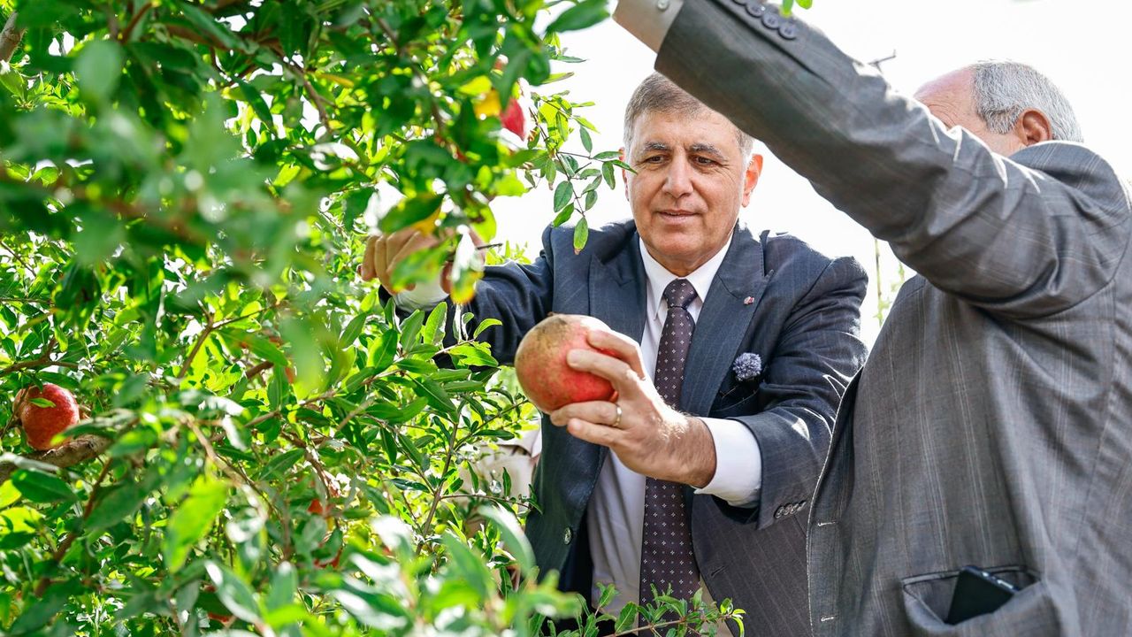 Dünya nar ihracatında ilk 10 içerisinde yer alan İzmirli üreticiler hasat yaptı. İzmir Büyükşehir Belediye Başkanı Dr. Cemil Tugay, Selçuk’ta gelenekselleşen nar hasadında çiftçilerin bereketine ortak oldu. Selçuk’un Zeytinköy Mahallesi’nde düzenlenen nar hasadında Başkan Dr. Cemil Tugay’a Efes Selçuk Belediye Başkanı Filiz Ceritoğlu Sengel, İzmir Büyükşehir Belediyesi Genel Sekreter Yardımcısı İsmail Mutaf ve Büyükşehir bürokratları, Selçuk Belediyesi yöneticileri, meclis üyeleri, muhtarlar, kooperatif başkanları ve çok sayıda çiftçi eşlik etti.