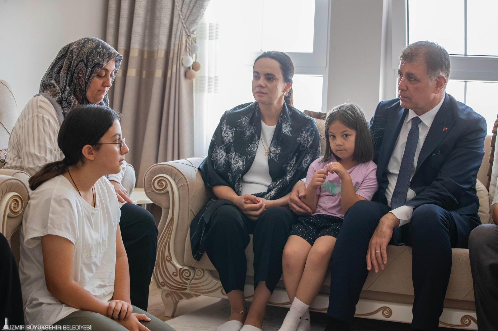 Şehidin eşi Hatice Demir ile ailesine başsağlığı dileyen Tugay çifti, İbrahim Demir’in kızları Ayşe (17), Ahsen (13) ve Elif’le (6) yakından ilgilendi. İzmir Büyükşehir Belediyesi İtfaiye Dairesi Başkanı Yaşar Korkmaz’ın da katıldığı taziye ziyaretinde, Başkan Tugay şehit Demir’in en küçük kızı Elif’e sarılarak, kendisinden bir isteğinin olup olmadığını sordu. Demir ailesinin acısını paylaşan Başkan Tugay, her zaman yanlarında olduğunu söyledi.