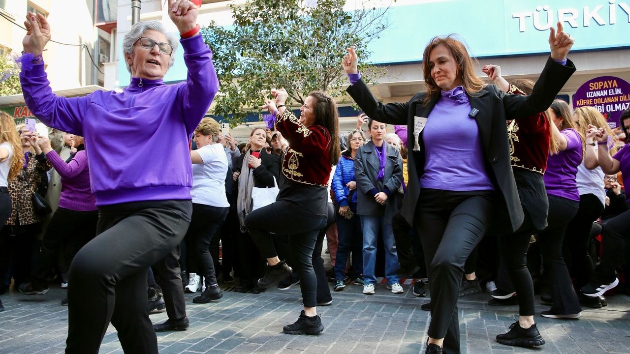 Kortej sonunda, Türkiye Cumhuriyeti’nin Kurucusu Gazi Mustafa Kemal Atatürk ve mücadele arkadaşları için saygı duruşunda bulunuldu, İstiklal Marşı okundu. Farklı yaş gruplarından kadınların oluşturduğu zeybek ekibi renkli bir gösteri sergiledi. Belediye Başkanı Yıldız Ünsal ve Karşıyaka Kent Konseyi Başkanı Dilek Karcı da harmandalı oynayarak gösteriye dahil oldu. Büyük alkış alan Ünsal; eşitlik, hak ve adalet mücadelesini el ele büyütmeye devam edeceklerini vurguladı.