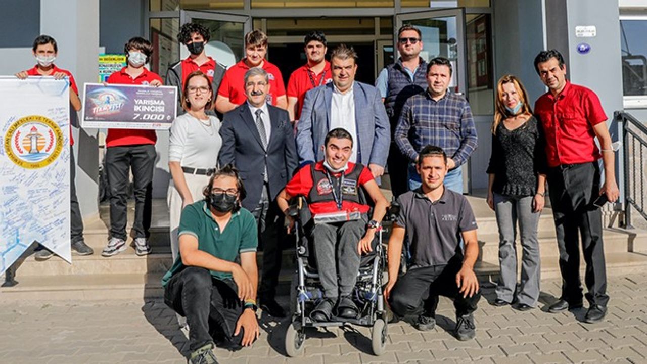 Yüzde 98 engelli arkadaşları Ege Katmerci'nin hayatını daha yaşanabilir kılmak için geliştirdikleri projeyi Başkan Yetişkin'e anlatan çocuklar 'Hem okulda öğrendiklerimizle hem de 3D yazıcıyla neler yapabileceğimizi kararlaştırarak Ege abi için aparatlar tasarladık. Bunlardan ilki bir fotoğraf çekme makinesi. Ege abi bir Solo Türk hayranı, uçakları ve fotoğraf çekmeyi çok seviyor. Bu hobisini gerçekleştirebilmesi için yatay ve dikey açıda dönebilen bir aparat geliştirdik. Bu aparatın bağlı olduğu bir buton, Ege abinin aracında bulunuyor. O butona bastığında istediği gibi fotoğraf çekebiliyor. Parmak kaldırmak bizim için çok basit olsa da Ege abi için çok büyük bir şey. Çünkü sınavlarda kağıdı, kalemi düşüyor ya da silmesi gereken bir yazı oluyor. Öğretmene seslenmesi arkadaşlarının dikkatini dağıtmasına sebep olabiliyor. Onun bu ihtiyacını karşılamak için geliştirdiğimiz parmak kaldırma aparatıyla Ege abi, önündeki butona basarak rahatlıkla parmak kaldırabiliyor' ifadelerini kullandı.