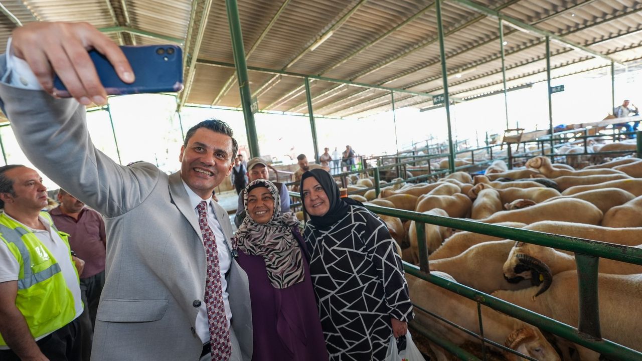 Manisa Büyükşehir Belediye Başkanı Mimar Ferdi Zeyrek, Genel Sekreter Burak Deste, Genel Sekreter Yardımcısı Ulaş Aydın ve daire başkanları ile birlikte kurbanlık satışlarının gerçekleştirildiği Hayvan Borsası’nı ziyaret etti. Farklı şehirlerden ve Manisa’nın ilçelerinden gelen kurbanlık satıcılarına bereketli satışlar dileyen Başkan Ferdi Zeyrek, taleplerini de dinledi. Başkan Zeyrek, kurbanlık almak için gelen Manisalılarla sohbet edip bayramlarını kutlayarak pazarlıklarına da aracılık etti.