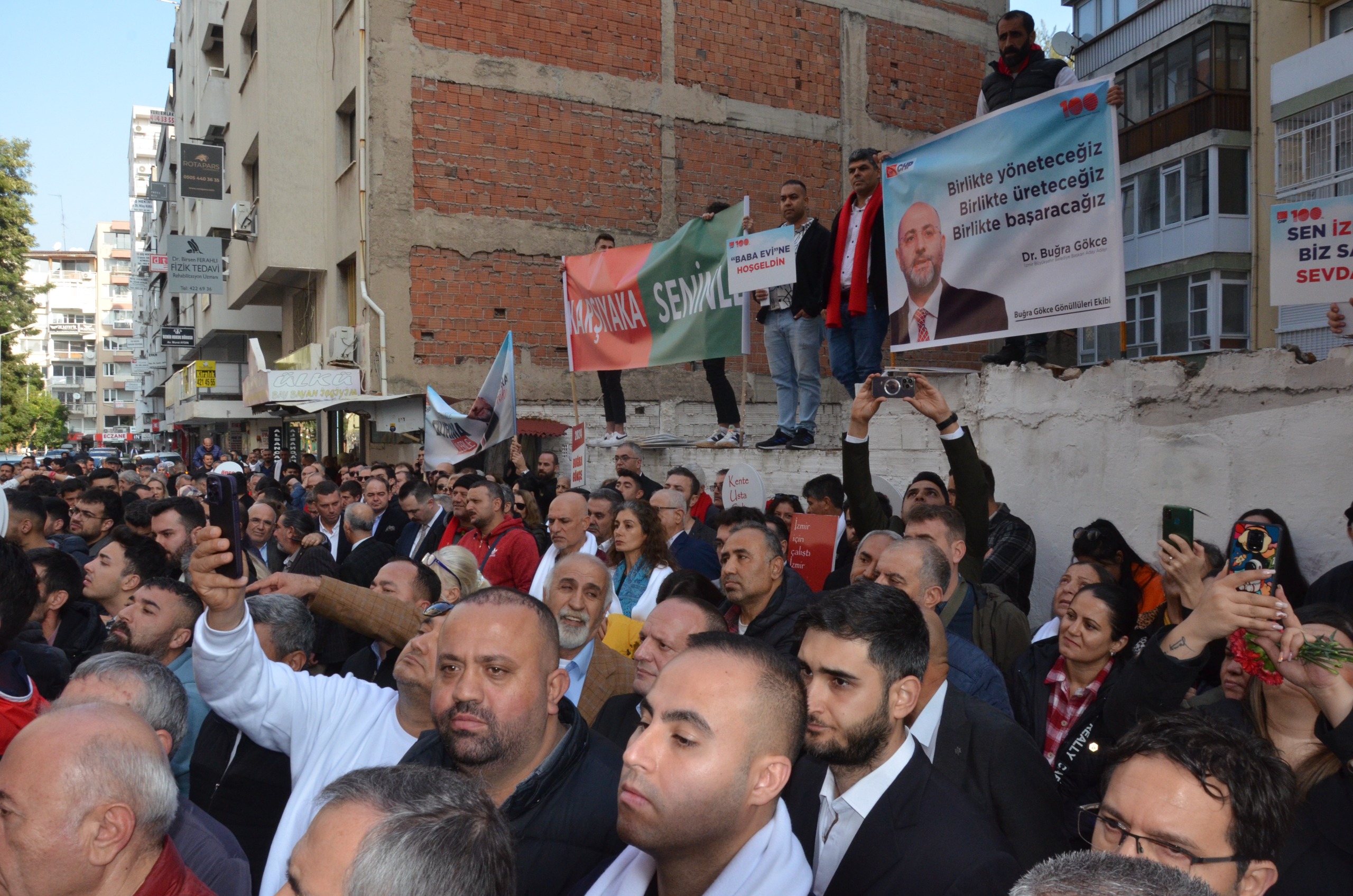 İktidara rant göndermesi yapan Gökce, 'Biz 21'inci yüzyılın tekniklerinden, imkanlarından yararlanacağız, 21'inci yüzyılın sorunlarına 21'inci yüzyılın çözümlerini sunacağız. İklim krizi ile mücadele bizim için öncelikli bir alandır. Biz İzmir'in ekolojik varlığını korumak, sürdürülebilir kalkınma ile gelecek kuşaklara önemli bir miras bırakmak istiyoruz. Ankara'daki beyefendilerin böyle bir derdi yok. Onlar şehirlerimizin afet direncini arttırmak, iklim kriziyle mücadele etmek, konut krizini çözmek filan böyle konularla ilgilenmiyorlar. Onlar şehirlerimize rant gözüyle bakıyor, biz halk için halka hizmet ederken onlar rant için ranta hizmet peşinde koşuyor. O zihniyetin yarattığı acı manzarayı da hep birlikte 6 Şubat'ta gördük. 6 Şubat'ta insanlarımızı sadece deprem öldürmedi. İmar afları ile çürük yapılara ruhsat veren zihniyet de öldürdü. Şehirlerimiz deprem direnci kazanmak, güçlenmek zorunda. Bugün hala bu konuya 'biz nasıl buradan para kazanırız, nasıl yeni adımlar atarak yandaşlarımıza yeni rant imkanları yaratırız' diyenler var. Bunları görüyoruz. Bir de bizim gibi şehirlerimizi güçlendirmek, insanlarımızı tabutta yaşamaktan kurtarmak için gecesini, gündüzüne katanlar var. Buradan çok açık söylüyorum: Kentlerimizin afet direncini yok eden, insanlarımızı bu çağda barınma sorununa mahkum eden, öğrencilerimizi yurtsuzluğa, milletimizi de kirasını bile ödemekte zorlandığı evlerde tabutta yaşamaya mahkum eden hükümete hayır diyeceğiz, kısa çöp uzun çöpten hakkını alacak. Buradan söz veriyorum. Göreve geldikten sonra, bir numaralı konumuz bu olacak. İzmir'in bütün gücüyle, bütün imkanlarıyla çalışacağız. İzmir'in altyapı, ulaşım, deprem güvenliği, konut krizi, yabancı sığınmacı dahil bütün sorunlarını çözmek için güç göstereceğiz, öneri sunacağız, hareket edeceğiz, proje geliştireceğiz, çalışacağız, başaracağız. İzmir'e söz veriyorum' dedi.