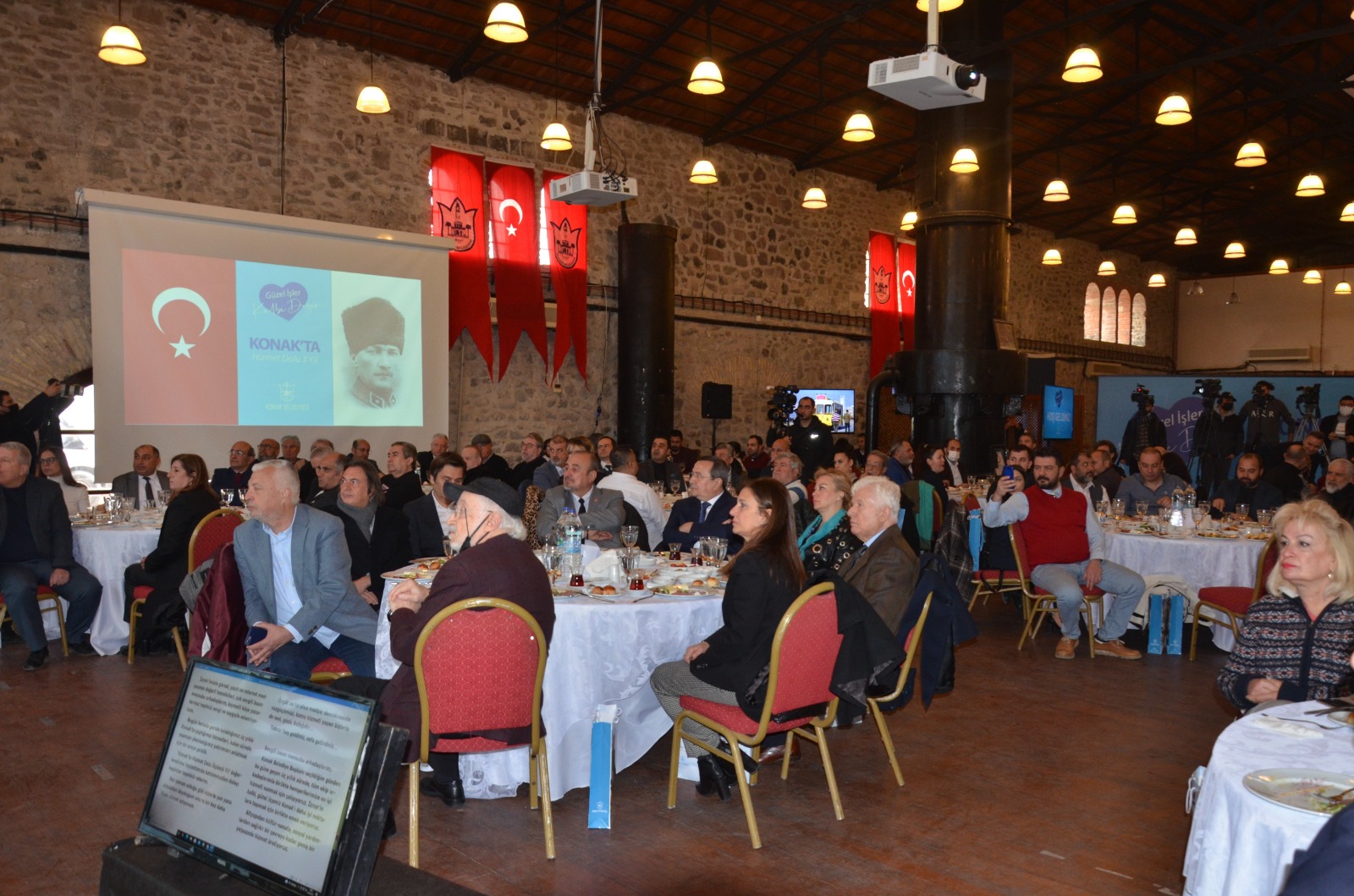 Alsancak'ta bulunan Tarihi Havagazı Fabrikası'nda basın mensupları ile bir araya gelen Başkan Abdül Batur, 3 yıllık hizmetlerin anlatıldığı video gösteriminin ardından kürsüye çıkarak konuşmasını gerçekleştirdi.
