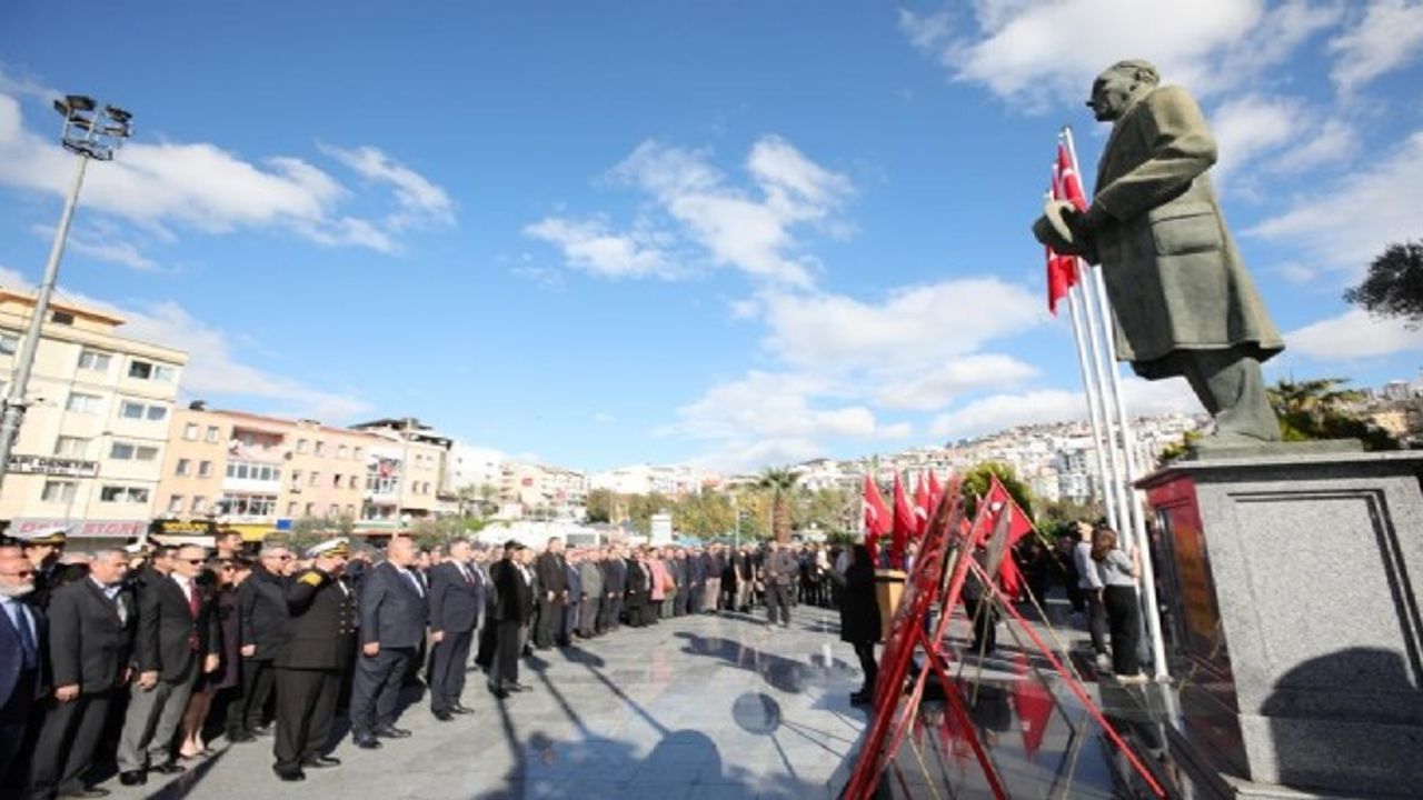 Bayraklı Sevgi Yolu'ndaki Atatürk Anıtı önünde gerçekleşen törende; İzmir Vali Yardımcısı Gökay Özkan, Bayraklı Belediye Başkanı Serdar Sandal, askeri erkan, Gaziler, sivil toplum kuruluşları, siyasi parti temsilcileri ve vatandaşlar bir araya geldi. Atatürk Anıtı'na çelenkler bırakıldı.