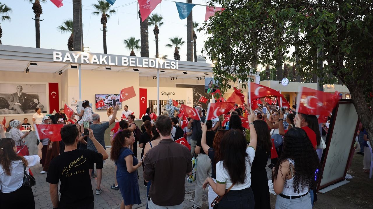 Öte yandan, Zafer bayramı, Bayraklı Belediyesinin İzmir Enternasyonal Fuarı’ndaki standında da büyük coşkuyla kutlandı. Soğuk heykellerin performansı, müzik dinletisi, yapay zeka destekli 30 Ağustos fotoğraf çalışması, müzik dinletisi ve halk oyunları gösterileri vatandaşlara unutulmaz anlar yaşattı. Vatandaşlar, stantta dağıtılan Türk bayraklarıyla hep bir ağızdan marşlar okuyarak renkli görüntüler oluşturdu.