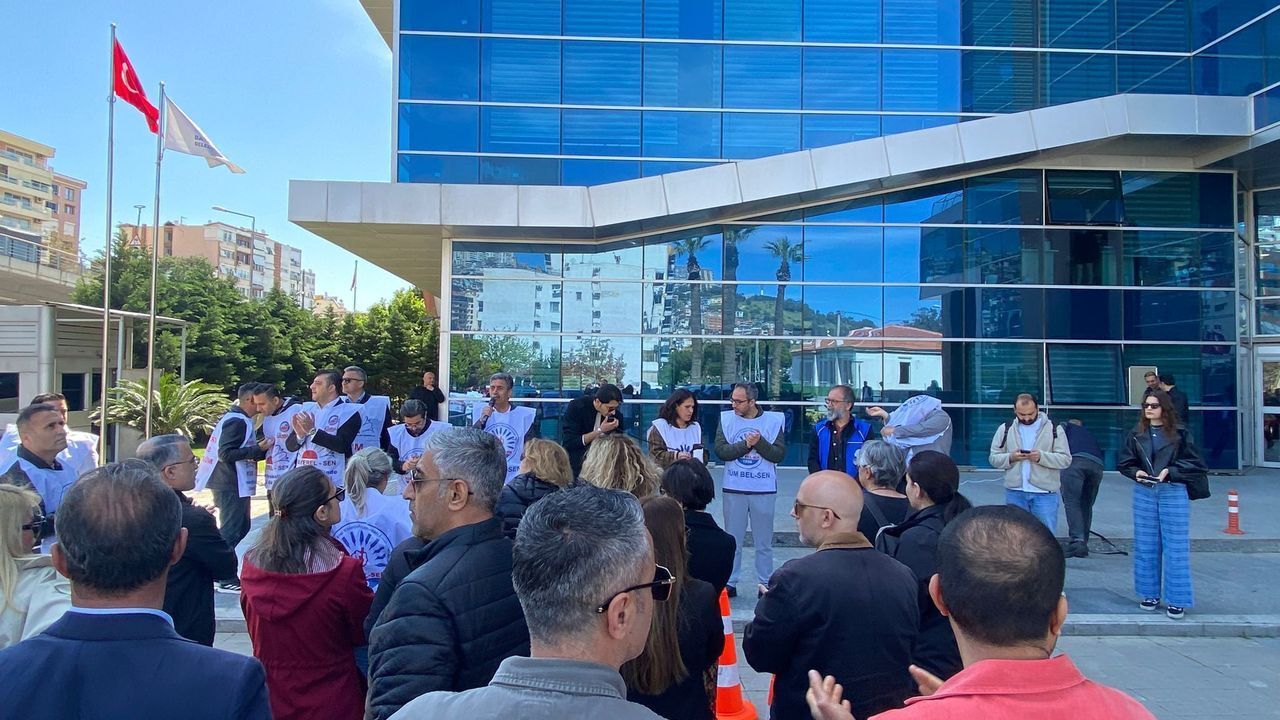 Tüm Bel-Sen İzmir 2 Nolu Şube Başkanı Nihat Filiz, açıklamasında, “Bayraklı Belediyesi’nde, dört kez toplu sözleşme masasında müzakereler yürüttük. Hiçbir maddede takılmadık. Bazı maddeleri daha sonra görüşmek üzere bırakmış olsak da onları da aştık. Geldiğimiz noktada Başkan’la görüşmeler yaptık. Hukukçular görüştü, süreci sonuçlandırarak belediye başkanımızla da bir araya geldiler. Sayın Önal bize son olarak, “Hukukçular konuşsunlar, eğer onlar ikna olursa ben de özgür toplu pazarlık yolunda adım atarım” demişti. Ancak geldiğimiz son noktada, bordrolar çıkmadan iki gün önce bir haber aldık ve toplu sözleşmeler yeniden sınırlandırılarak geri gönderildi. Bunu kabul etmediğimizi her yerde ifade etmeye devam edeceğiz; orada da söyledik. Biz bu hakları bedeller ödeyerek elde ettik. Bir kişinin bahşetmesiyle, iki dudağının arasından çıkacak sözlerle bunların belirlenmesini asla kabul etmeyiz. Bu toplu sözleşme bu haliyle dayatılmaya devam edilirse, imza atmayacağımızı buradan bir kez daha ilan ediyoruz” dedi.