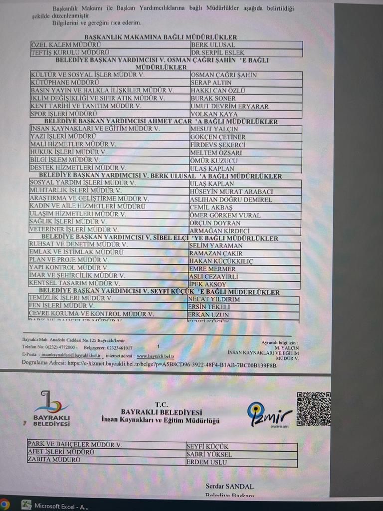 Ayrıca Temizlik İşleri Müdürlüğüne Necati Yıldırım, Bilgi İşlem Müdürlüğüne Ömer Kuzucu, Araştırma ve Geliştirme Müdürlüğüne Aslıhan Doğru Demirel, Ruhsat ve Denetim Müdürlüğüne Selim Yaraman, Yapı Kontrol Müdürlüğüne Emre Mermer ve Çevre Koruma ve Kontrol Müdürlüğüne de Erkan uzun atandı.