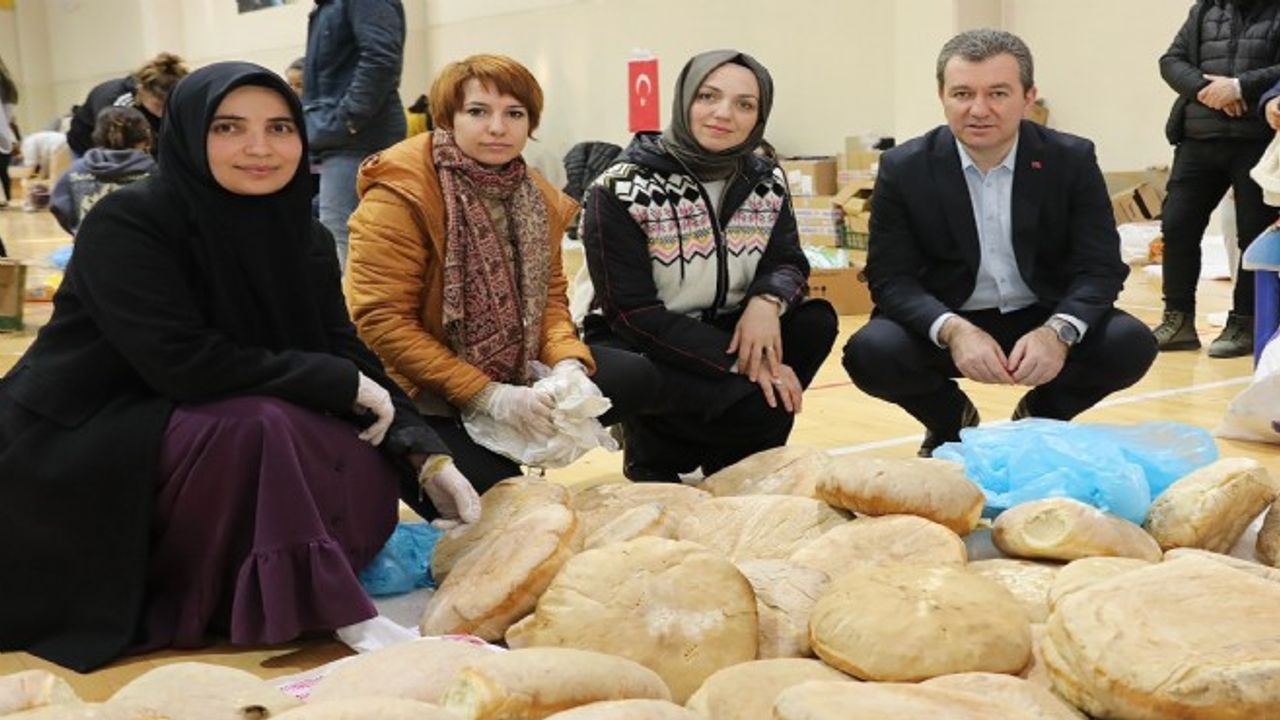 PİŞİRİLEN EKMEKLER GENÇLER VE BABALAR TARAFINDAN YARDIM TOPLAMA MERKEZLERİNE TAŞINIYOR