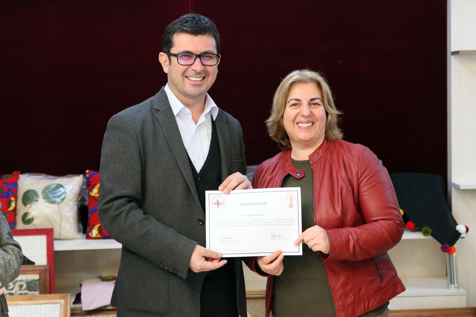 File kursunu başarıyla tamamlayan 21 kişiye sertifikaları Kadın Girişimi Kooperatifi'nde düzenlenen törenle verildi. Sertifika törenine Bergama Belediye Başkanı Mehmet Gönenç eşi ile birlikte katıldı ve emekçi kadınlara sertifikalarını takdim etti. Törene katılan Bergama Sergiciler Odası Başkanı Süleyman Türkoğlu ise çevre duyarlılığını arttırmak amacıyla 1000 file satın aldıklarını ve pazar yerinde vatandaşlara ücretsiz dağıtacaklarını ifade etti.
