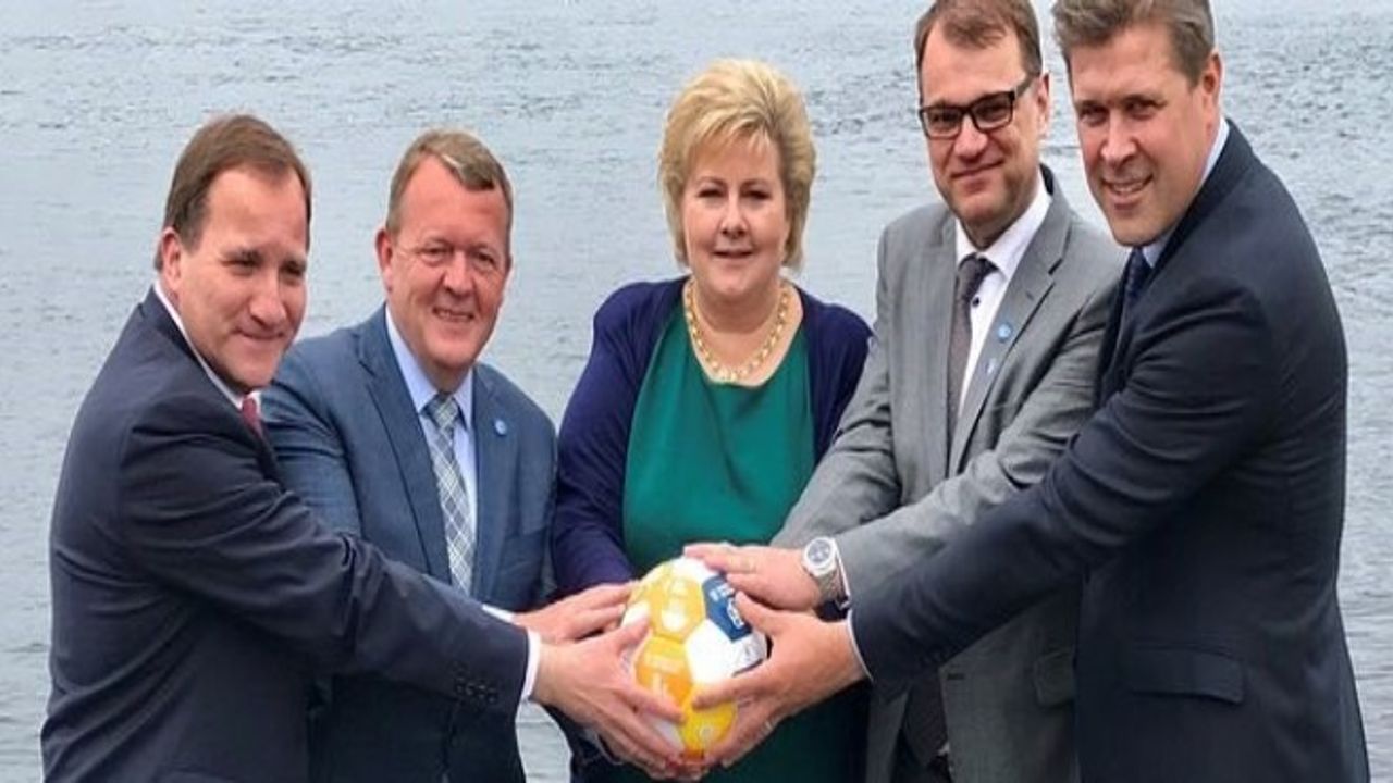 İsveç, Danimarka, Norveç, Finlandiya ve İzlanda başbakanlarının bir toplantının ardından futbol topuna ellerini koyarak çektirdikleri fotoğraf, bir gazetecinin Twitter hesabında paylaşıldı.