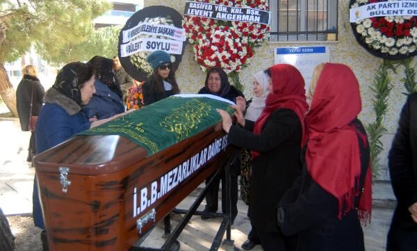 Adli Tıp Kurumu'ndaki otopside, vücudunda kesici ve delik bir yara izin bulunmayan Ayşe Pakdemirli Anlatıcı'nın cenazesi, otopsinin ardından bugün Balçova Uğur Cami'ne götürüldü.