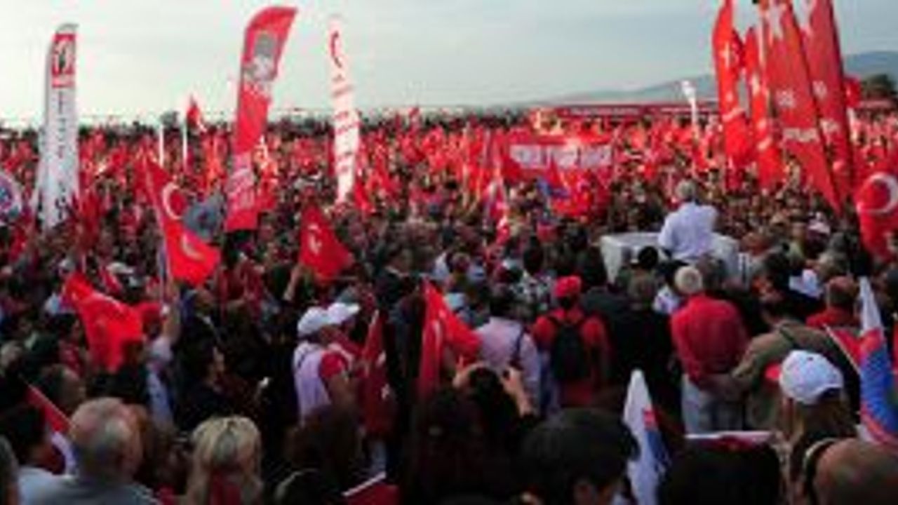 Sivil toplum kuruluşları, meslek odaları ve İzmirliler tarafından organize edilen, CHP'nin de büyük destek verdiği 'Cumhuriyet Yürüyüşü' binlerce İzmirli'yi Alsancak'ta buluşturdu.