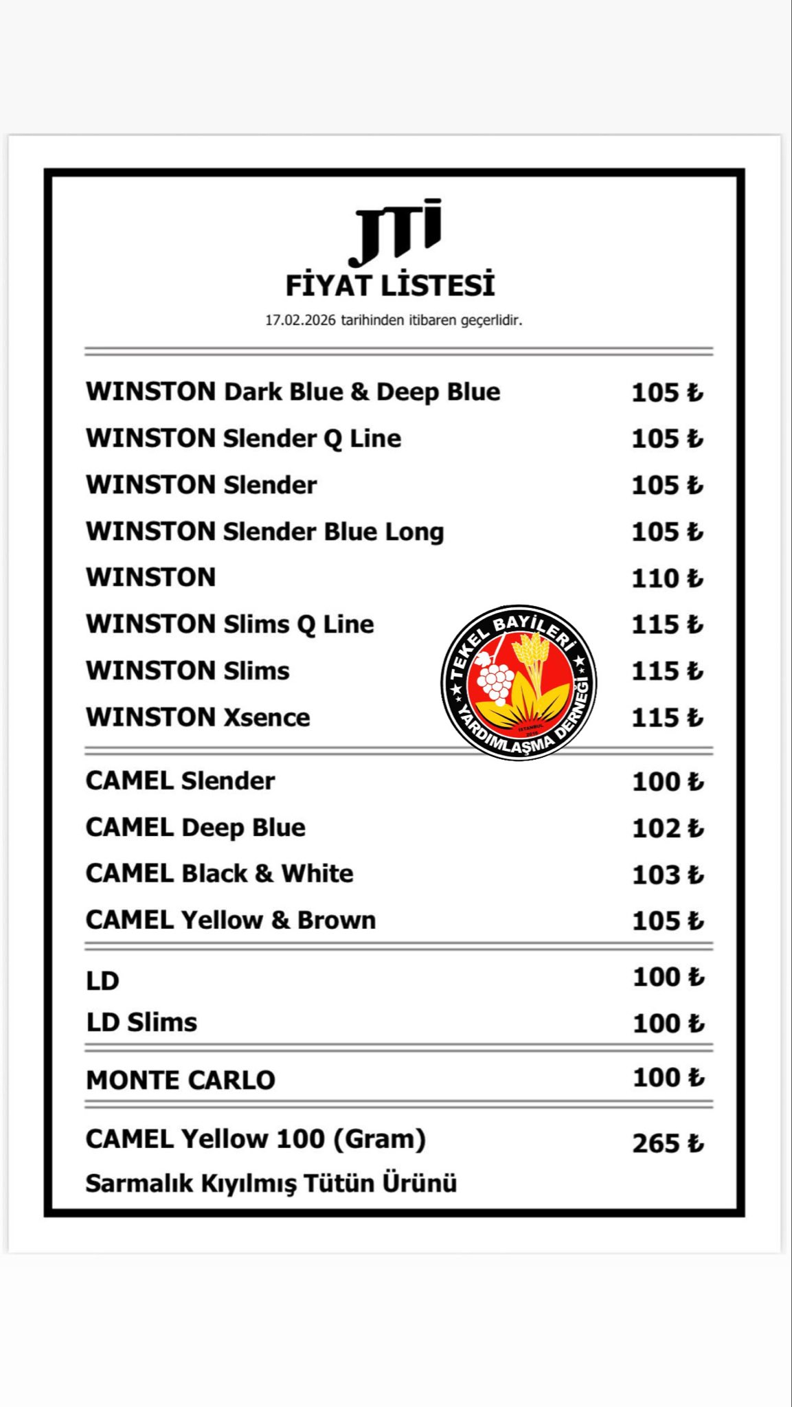 Tekel Bayileri Yardımlaşma Derneği Başkanı Erol Dündar, sosyal medya hesabı üzerinden bir sigara grubuna zam geldiğini duyurdu.