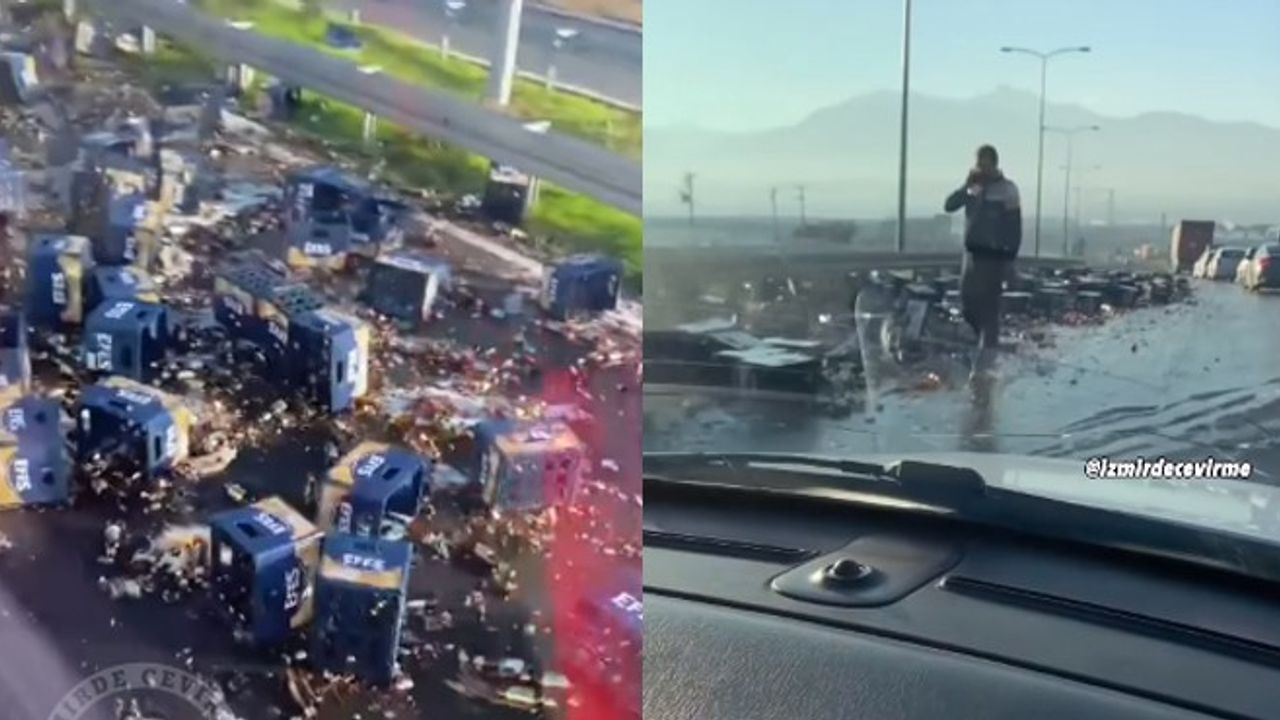 EGEDESONSÖZ – Kaza, sabah saatlerinde Kemalpaşa Akalan mevkiinde meydana geldi. Sürücünün ani manevra yapması sonucu kamyonda bulunan bira şişeleri yola döküldü.