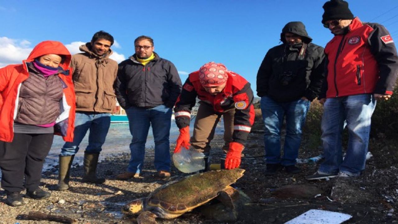 Bitkin haldeki deniz kaplumbağasının vücudunda herhangi bir yara izine rastlanmadı.