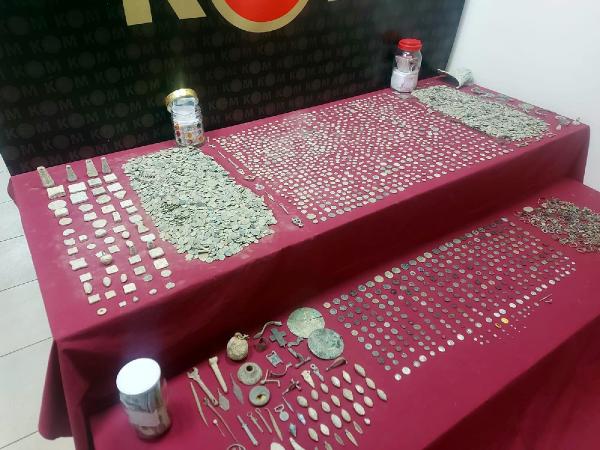 İl Emniyet Müdürlüğü Kaçakçılık Suçlarıyla Mücadele Şube Müdürlüğü ekipleri, Turgutlu ve Ödemiş ilçelerindeki toplam 3 evde tarihi eser bulunduğu bilgisi üzerine 20 Mayıs'ta belirlenen adreslere operasyon düzenledi. Aramalarda bazıları evlerin bodrum katlarında toprağa gömülü, Arkaik, Helenistik, Roma ve İslami döneme ait 8 bin 194 sikke, 1 altın sikke, 1 altın küpe, 1583 obje ve obje parçası, 7 fibula, 2 bronz ayna, 1 bronz parça, 22 mühür, 259 yüzük ve yüzük parçası, 109 ağırlık, 22 kolye ucu, 63 eski para, 32 düğme, 37 küpe, 47 ok ucu, 5 küçük kılıç ve 1 dedektör ele geçirildi.
