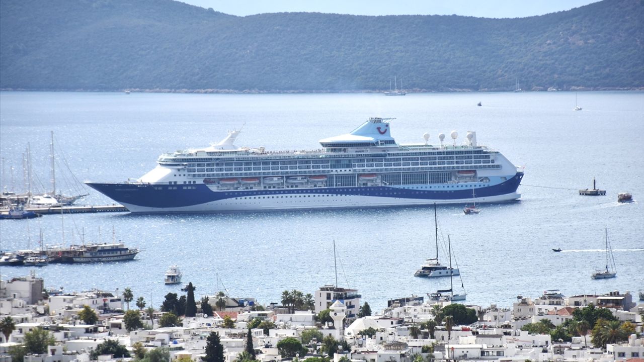 Santorini Limanı'ndan hareket eden Bahamalar bayraklı 264 metre uzunluğundaki gemi, Bodrum Limanı'na yanaştırıldı.