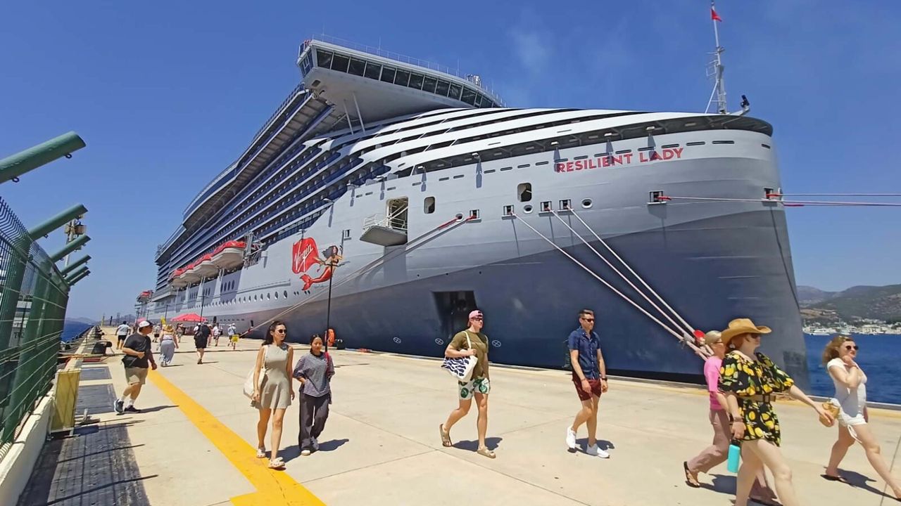 Dünyanın en önemli turizm destinasyonlarından biri olan Bodrum kruvaziyerler gelmeye devam ediyor. Bu kapsamda, Bahamalar bayraklı 277 metre uzunluğundaki kruvaziyer saat 08.00’da Santorini Limanı'ndan Bodrum’a geldi. Gemide ağırlıklı olarak ABD’li olmak üzere 2 bin 606 yolcu ve 1149 personel bulunuyor. Kente gelen turistler tarihi noktaları ziyaret etti, çarşıda alışveriş yaparak vakit geçirdi. Kruvaziyerin ise saat 20.00’da Mikonos’a hareket edeceği belirtildi.(DHA)