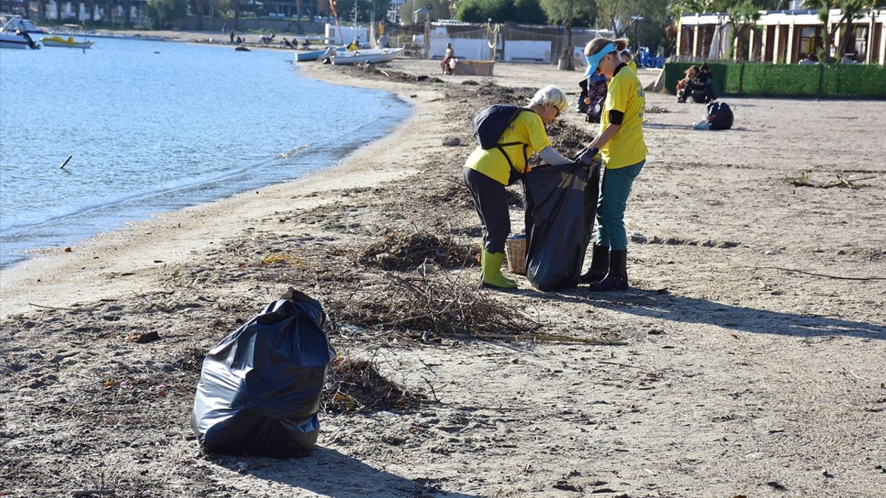 "Misgibi1Bodrum" gönüllüleri, atıkların yoğunluk oluşturduğu Bitez sahilinde temizlik yaptı.