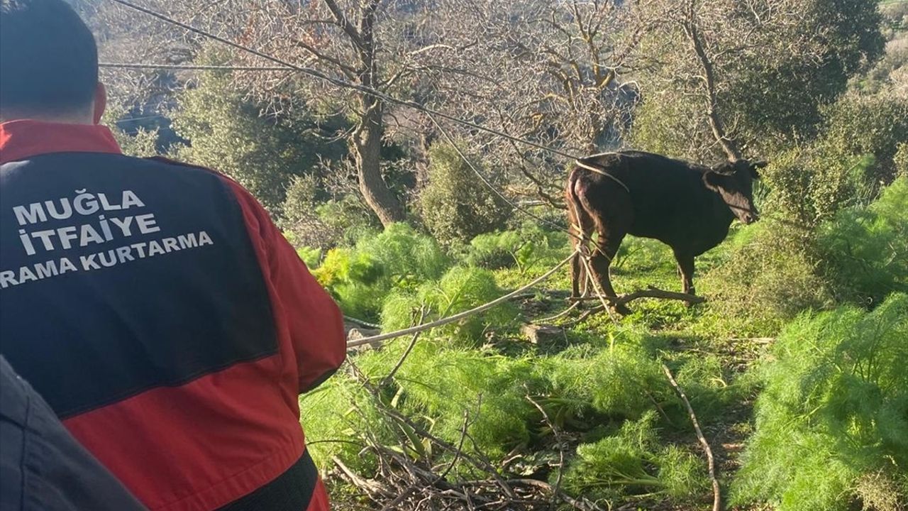 Akyarlar Mahallesi'nde bir buzağının kuyuya düştüğü ihbarını alan Muğla Büyükşehir Belediyesi Bodrum İtfaiye Grup Amirliği ekipleri bölgeye gitti.