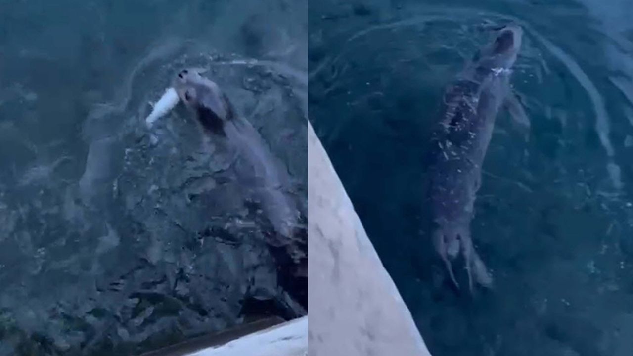 Olay, sabah saatlerinde Yalıkavak Mahallesi'ndeki rıhtımda meydana geldi. Kıyıya yakın noktada yüzen foku fark eden vatandaşlar, o anları cep telefonu kamerasıyla kaydetti.