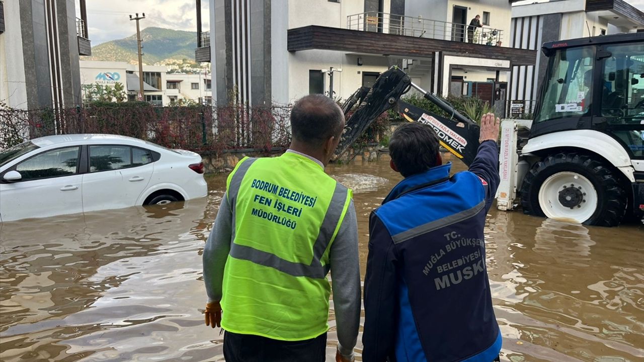 İlçeye yaklaşık 12 saatte metrekareye 44,2 kilogram yağış düştüğü kaydedildi. Belediye ekipleri Gümbet Mahallesi'nde vidanjör ve iş makineleri yardımıyla temizlik çalışması yaptı.