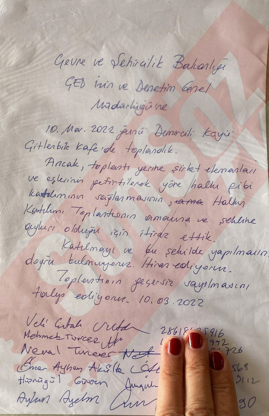 Toplantıyla ilgili bilgi veren çevreci Avukat Şehrazat Mercan şirketlerin işletmelerinde çalışanları toplantıya getirdiğini söyleyerek 'Biz de bu yörede yaşamayan insanların toplantıya getirilerek halkın katılım toplantısının yapılmasının toplantının amacına ve şekline aykırı olduğunu belirten bir tutanak tuttuk. Tutanakları bakanlığa göndereceğiz. Yöre halkı toplantıya katılmadı. Bu bölge turizmle ve tarımla kalkınması gereken bir bölge. Burada bir böylesi endüstriyel bir faaliyetin bölge üzerinde baskı oluşturacaktır. Buradaki çiftliklerin bile kaldırılması gerekirken yeni çiftlikler için ÇED süreçlerinin başlatılması bakanlığın kendi planlarına aykırı' dedi.