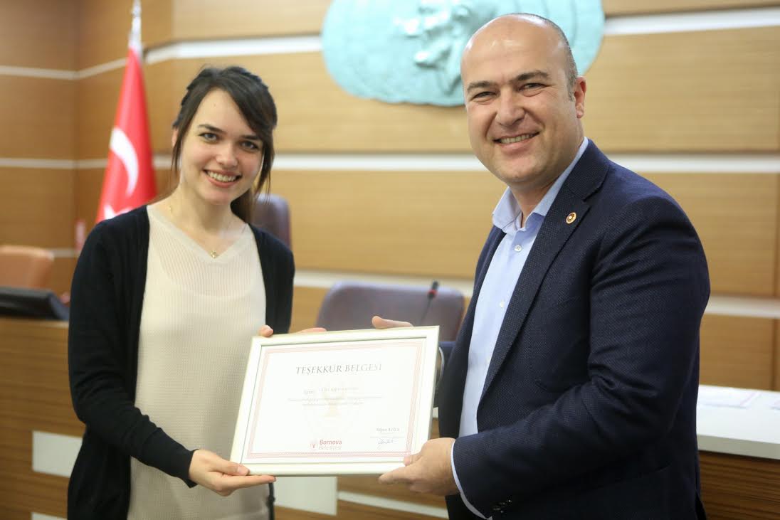 Bornova Belediyesi'nin vatandaşların bilgisayar kullanımı ve internet bilgilerini arttırmaya yönelik çalışmaları kapsamında düzenlediği eğitimi tamamlayan 80 kursiyer sertifika heyecanı yaşadı. Muhtarlar, sivil toplum kuruluşlarının temsilcileri, yetişkinler ve çocuklardan oluşan kursiyerlerin katılım belgelerini CHP İzmir Milletvekili Murat Bakan ve Bornova Belediye Başkanı Olgun Atila verdi.