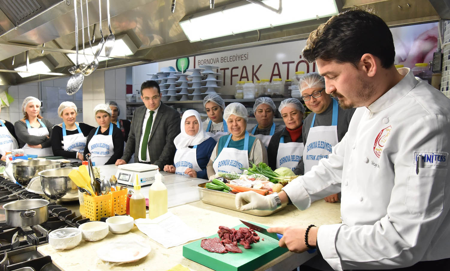 Bornova Belediyesi Mutfak Atölyesi, bir yandan meslek edindirme kurslarıyla aşçı ve pasta ustaları yetiştirirken bir yandan da hobi olarak yemek pişirmeyi öğrenmek ve kendini bu alanda yetiştirmek isteyenler için çok özel kurslar düzenliyor. Bu kapsamda Evka-3'teki Mutfak Atölyesi'nde aşçılık ve pastacılık kursu düzenleniyor.