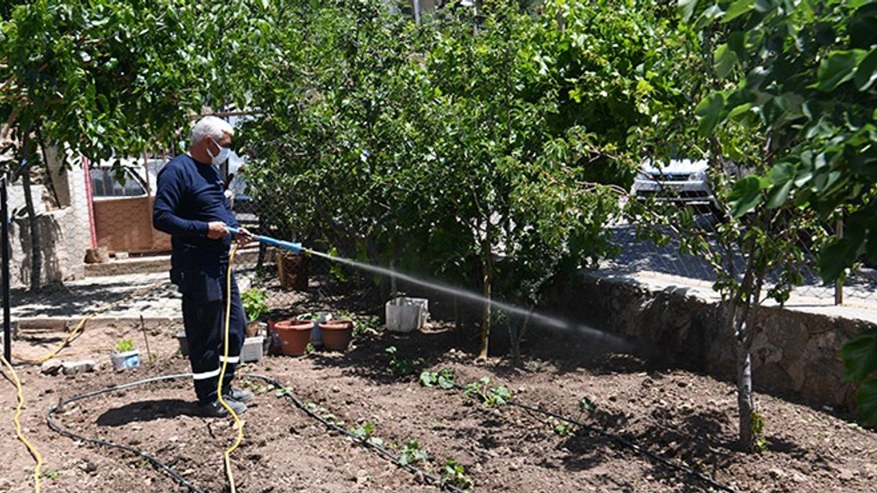 Bornova Belediyesi Tarımsal Hizmetler Müdürlüğü ekipleri, Çamiçi Mahallesi'nde yayan Sabriye-Hikmet Drahor çiftine de yardım eli uzattı. KOAH (Kronik Obstrüktif Akciğer Hastalığı) hastası olan ve kendi ilaçlamasını yapamayan 65 yaşındaki Hikmet Drahor'un meyve bahçesinde ilaçlama yaptı.