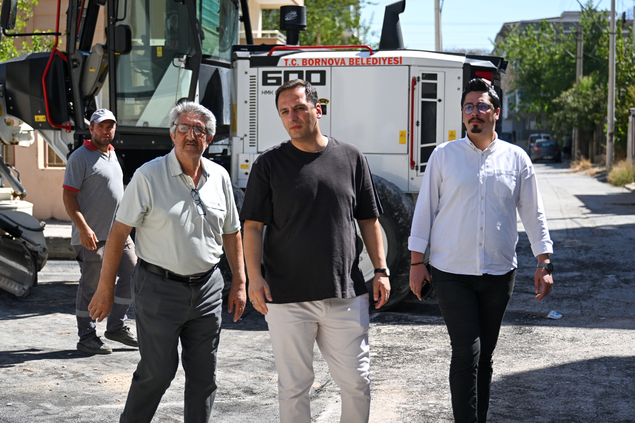 Bornova Belediye Başkanı Ömer Eşki, Fen İşleri ekiplerinin sahadaki çalışmalarını bizzat yerinde inceledi. Mevlana Mahallesi 1712/3 Sokak’ta yapılan asfaltlama çalışmalarına katılan Başkan Eşki, Bornovalılara söz verdikleri gibi her noktayı yenileyeceklerini vurguladı.