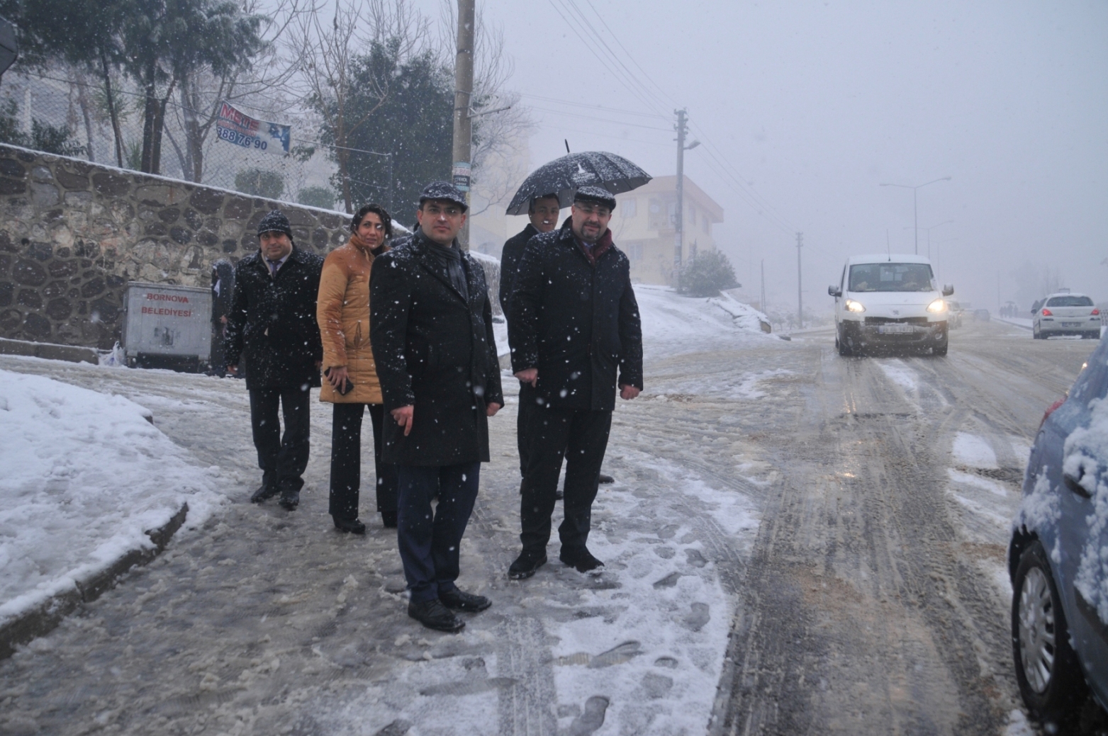 Bornova'daki kar yağışı başta yüksek kesimlerdeki mahalleler olmak üzere ilçenin tümünü beyaz örtüyle kapladı. Vatandaşların kar yağışından olumsuz etkilenmesini önlemek için ekipler aralıksız çalıştı. Bornova Belediyesi Fen İşleri Müdürlüğü ekipleri Atatürk, İnönü, Evka-4, İzyuva, Evka-3, Erzene, Çamkule, Kavaklıdere, Yeşilçam, Karaçam, Kayadibi, Çamiçi, Beşyol, Çiçekli, Yaka, Sarnıç ve Kurudere mahallelerinde 6 kepçe, 6 tuzlama ekibi ve bir greyderle yolları açık tutmak için çalıştı. Kar küreme ve tuzlama çalışmaları gün boyunca devam ederken, Bornova Belediye Başkanı Olgun Atila çalışmaların gece de aralıksız devam edeceğini söyledi.