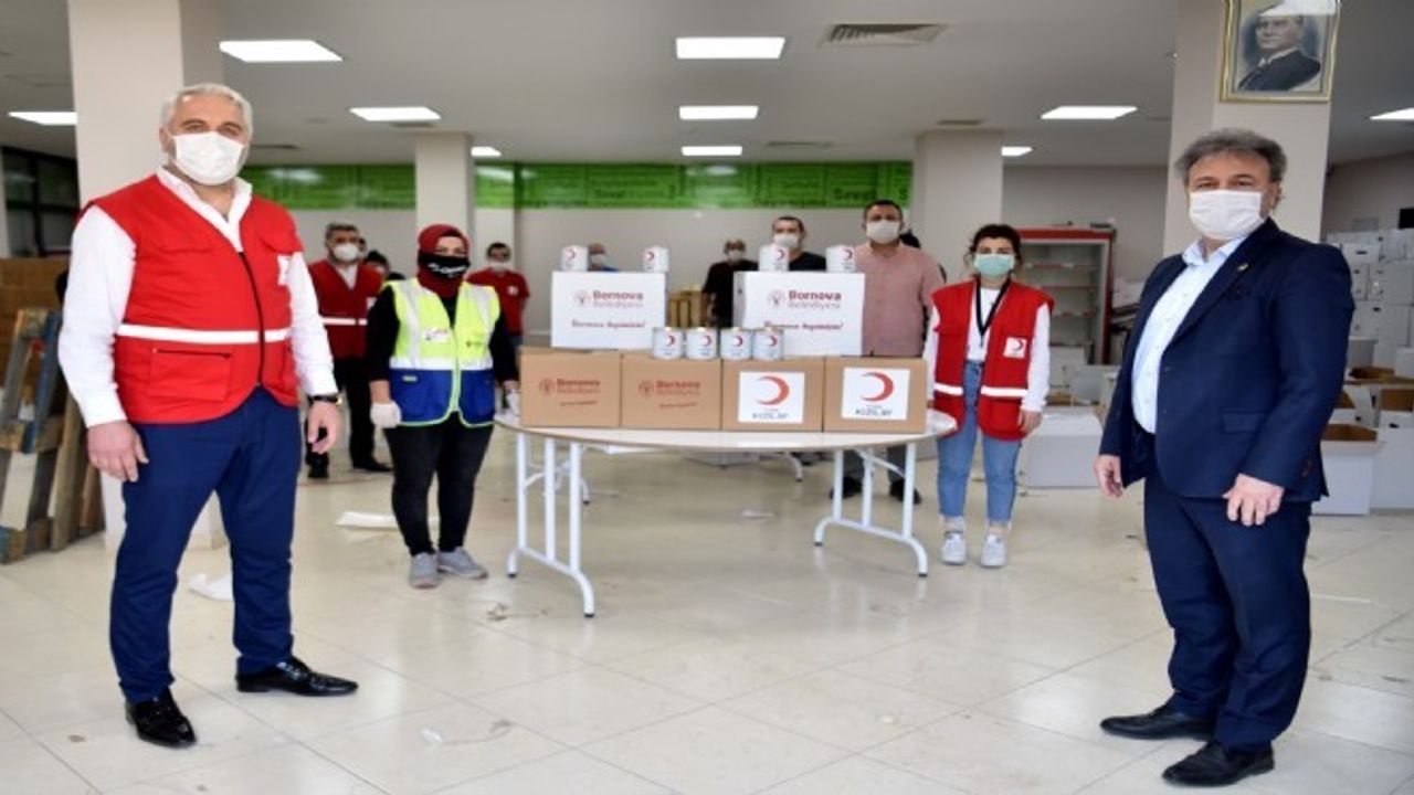 Bornova Belediyesi tarafından hazırlanan ve dağıtımı yapılan gıda paketlerinde şeker, pirinç, bulgur, mercimek, kuru fasulye, nohut, makarna ve ayçicek yağı gibi ürünler bulunuyor. Kızılay'ın da desteğiyle