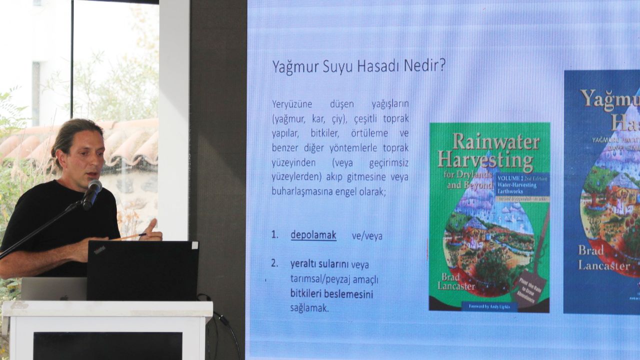 Yuva Derneği Eğitmeni Emre Rona ise Yağmur Suyu Hasadı ve Kırsalda Su Tutma Çalışmaları başlıklı konuşmasında; “Toprağın suyu tutma kapasitesini artırmadan hiçbir kent kendini iklim risklerine karşı koruyamaz.” ifadelerini kullandı. Rona, ayrıca kent çeperlerinde oluşturulacak yeşil altyapıların, afet risklerini azaltmada kritik rol oynadığını vurguladı.