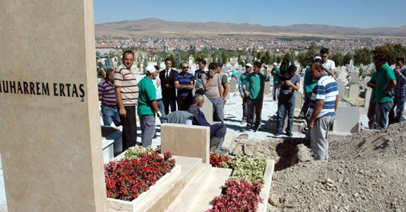 Mezarlıklar Müdürlüğü ekipleri, eski mezar yerini kapatarak, Muharrem Ertaş'ın ayak ucunda yeni mezar yeri açtı.
