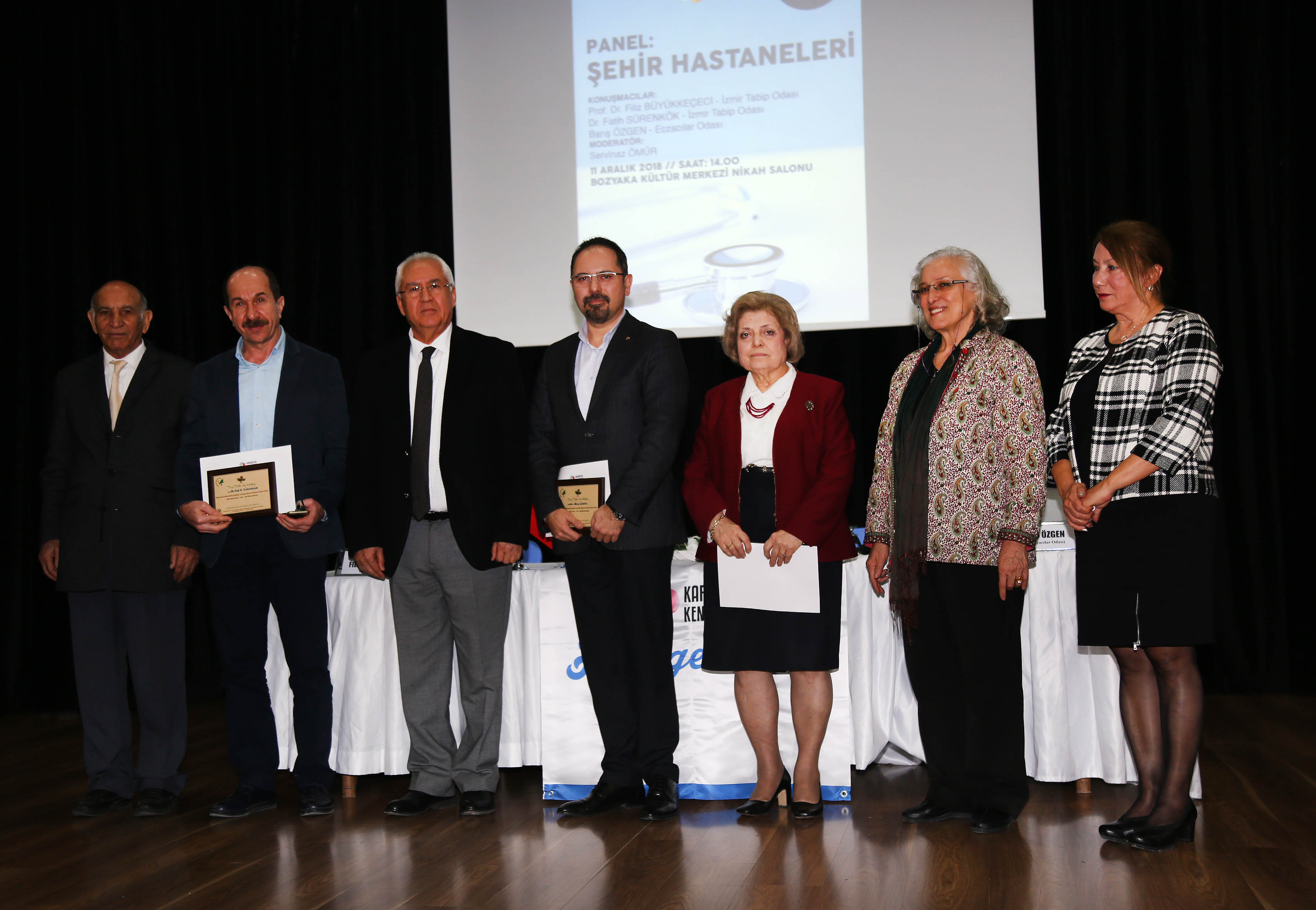 Panelde Dr. Sürenkök ayrıca, Bayraklı'da 2019 da açılması planlanan şehir hastanesinin açıldığında Bozyaka ve Yeşilyurt gibi Devlet Hastaneleri'nin kapatılacağını belirterek, kimsenin bu gelişmeden haberinin dahi olmadığını söyledi. Eczacı Özgen ise ilaçta ve ayakta tedavide hastaları bundan sonra nelerin beklediğini panele katılanlara aktardı.