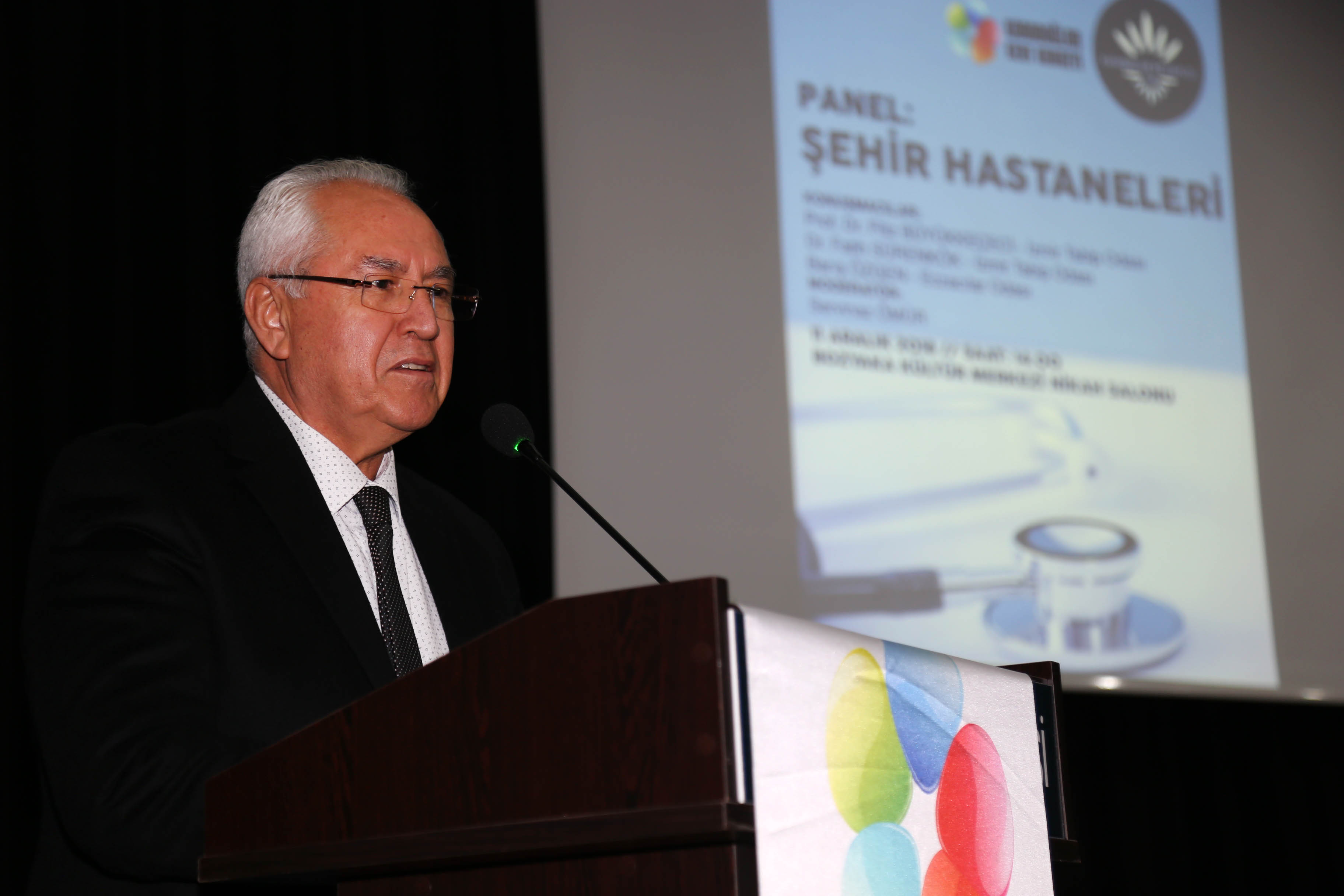 Konuşmaların ardından panele geçildi. Moderatörlüğünü Karabağlar Belediyesi Meclis Üyesi Servinaz Ömür'ün yaptığı panele konuşmacı olarak İzmir Tabip Odası'ndan Prof. Dr. Filiz Büyükkeçeci, Dr. Fatih Sürenkök ve İzmir Eczacılar Odası'ndan Barış Özgen katıldı. Şehir hastaneleri projesinin ithal bir proje olduğunu belirten Prof. Büyükkeçeci ve Dr. Sürenkök, yıllık sağlık harcamalarının 2 katına çıktığına dikkat çektiler. Hastaneler için devletin yüzde 70 doluluk garantisi verdiğinin altını çizen Büyükeçeci ve Sürenkök, sağlık reformu olarak sunulan projenin aslında paralı ve pahalı bir hale geldiğini ve yakın zamanda geçilemeyen otoyol ücretleri gibi bu hastanelere de cepteki paradan vergi kesileceğini belirttiler.