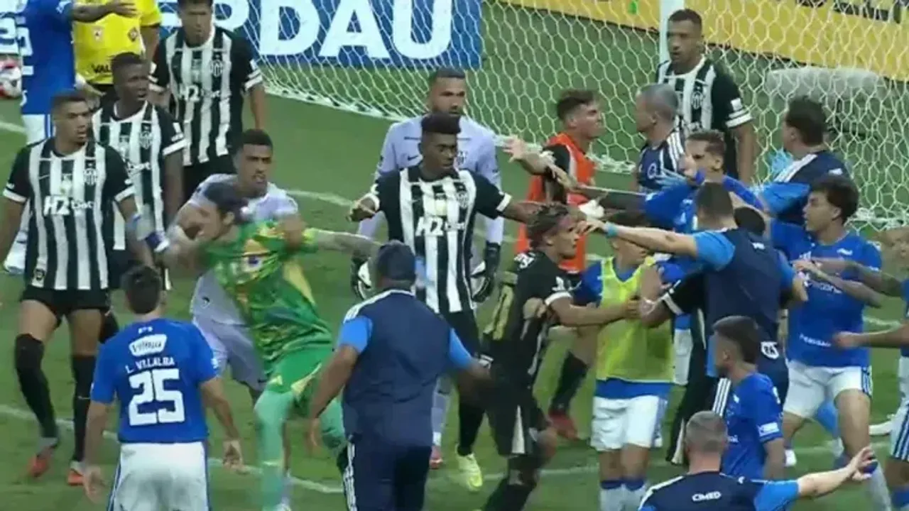 Cruzeiro ve Atletico Minerio arasındaki karşılaşmanın uzatma dakikalarında Everson ve Christian arasındaki tartışma kavgaya karıştı.