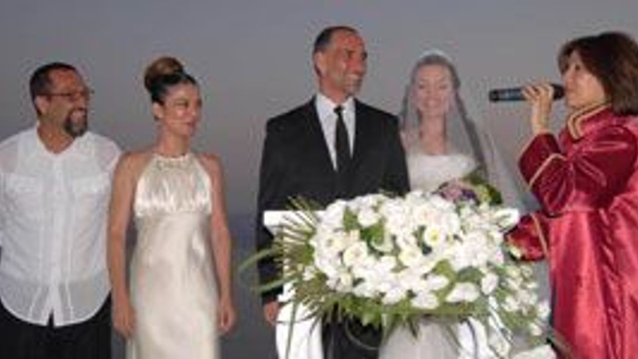 İZMİR - Altı yıl önce bir market alışverişi sırasında tanışan ve birliktelikleri dört yılı tamamlayan Fulya Ceylan Aksütlü ile Cenk Ertan'ın düğünü İzmir Bayraklı sahilindeki Ex Rain Saime Sultan Yalısı 1896'da yapıldı. Bugüne kadar rol gereği defalarca gelinlik damatlık giyen çiftin nikah tanıklıklarını Abdurrahman Aydın ve Esra Evdüzen üstlendi. Çifti mutlu günlerinde akrabaları, dostları yalnız bırakmadı.