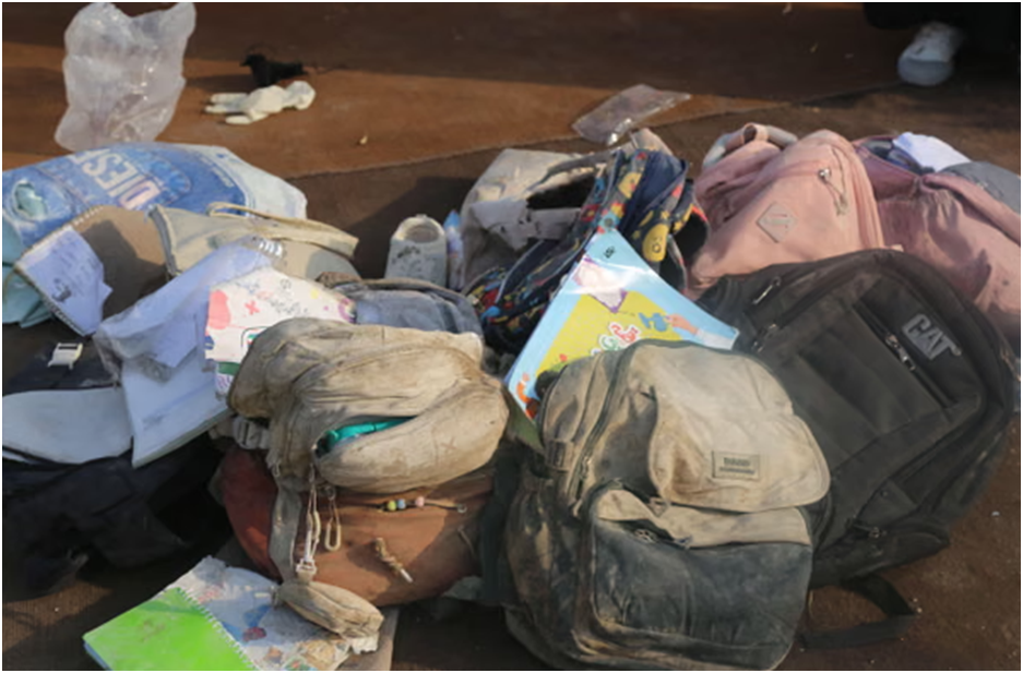 Kanlı sırt çantaları.Tozla kaplı pembe sandaletler.Yarım kalmış ödevler.Bir baba, enkazın üzerinde ders kitaplarını sallayarak bağırıyordu, “Bunlar bu çocukların kitapları! Bu kitapların üzerinde kan var. Burası askeri bir yer değil, burası bir okuldu!”