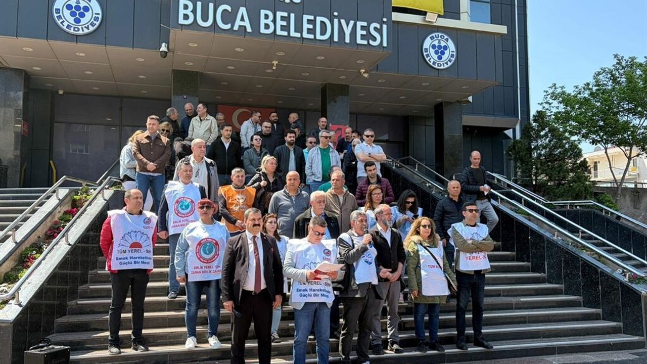 Buca Belediyesi’nde ise memurların belediye binası önünde bir araya gelerek basın açıklaması yaptı.