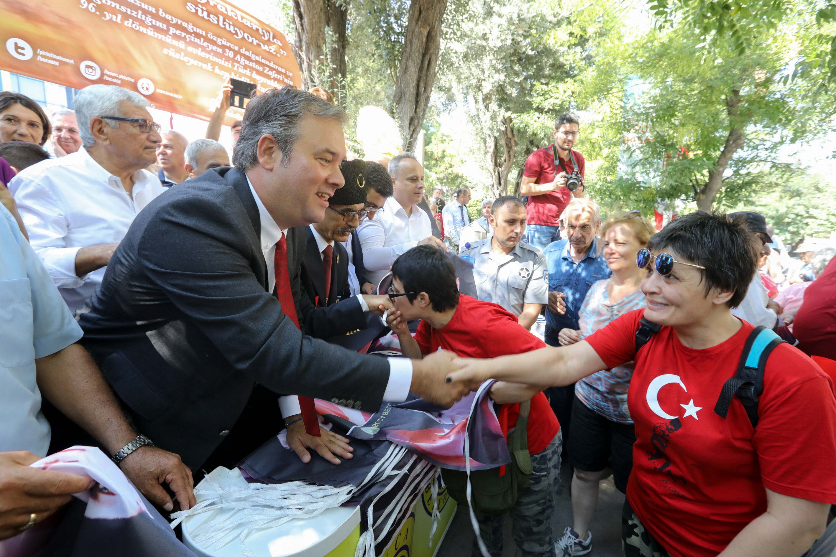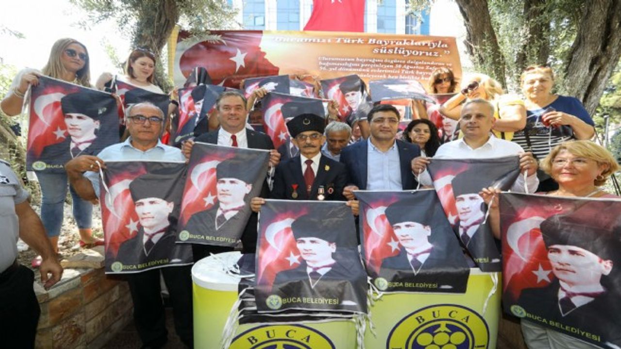 Buca Belediyesi 30 Ağustos Zafer Bayramı nedeni ile vatandaşlara Ulu Önder Mustafa Kemal Atatürk'ün portresinin yer aldığı Türk Bayrağı dağıttı. Belediye hizmet binası önünde gerçekleşen bayrak dağıtımına Buca Belediye Başkanı Levent Piriştina, CHP Buca İlçe Başkanı Kasım Akdağ, Muharip Gaziler Derneği Buca Şube Başkanı Şükrü Karaca, Atatürkçü Düşünce Derneği Buca Şube Başkanı Yılmaz Yıldız, meclis üyeleri ve binlerce Bucalı katıldı.