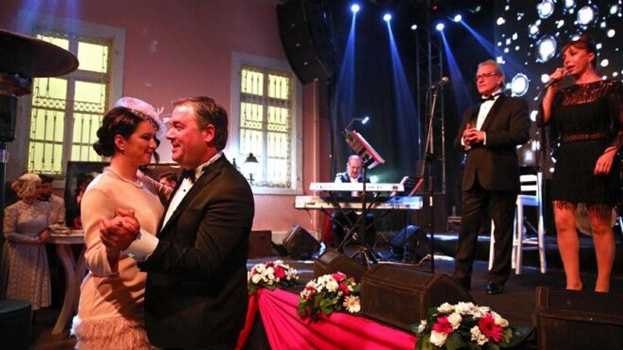 Dönem kostümleri giyen görevliler tarafından karşılanan misafirlere, balo girişinde Cumhuriyet getirileriyle yakalanan 1930'lu yılların şıklığı ve ruhunu yansıtan kep şapka ve papyon verildi.
