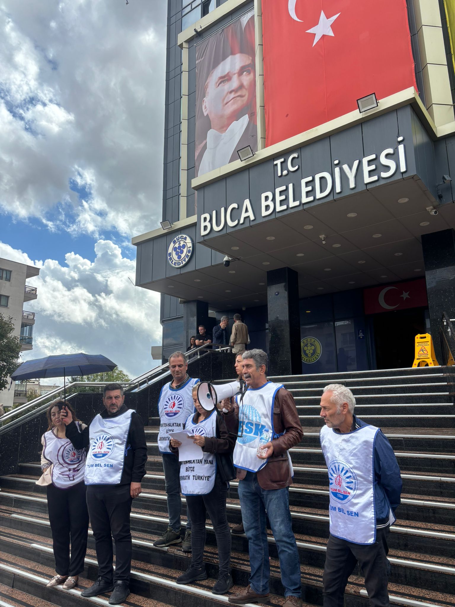 Buca Belediyesi yönetimi, sendikamıza ve üyelerimize, bizlerin ve Genel Merkez yönetim kurulu üyelerimiz önünde 2 Ekim itibariyle ödeme yapılacağına dair söz vermiştir. Ancak bugün görüyoruz ki bu söz henüz beklenen paranın gelmediği söylemiyle tutulmamış, belediye çalışanları yine oyalanmış ve yaşadığımız ekonomik kriz görmezden gelinmiştir.
