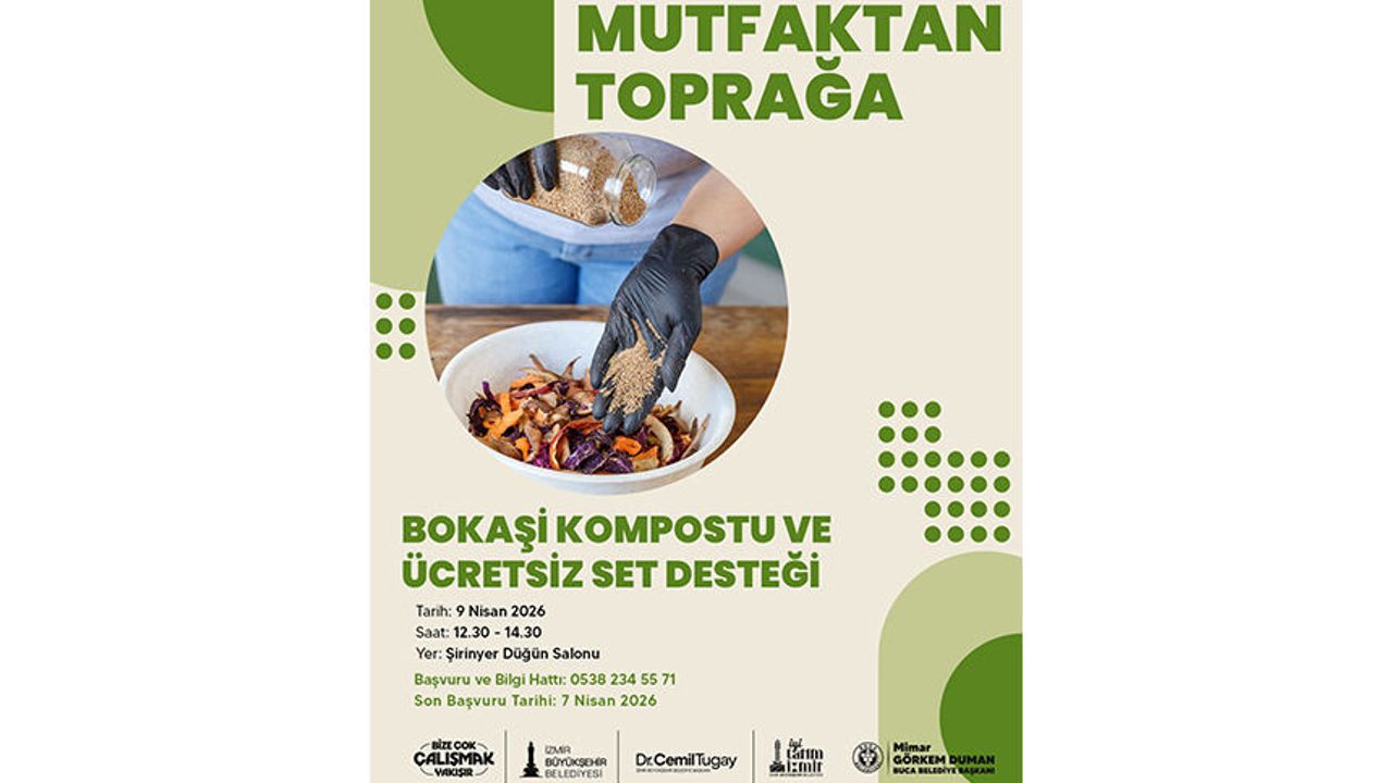 Buca Belediyesi, sürdürülebilir bir çevre ve sıfır atık vizyonu doğrultusunda anlamlı bir projeye imza atıyor. İzmir Büyükşehir Belediyesi ve Buca Belediyesi iş birliğiyle düzenlenen "Bokaşi Kompostu Eğitimi", 9 Nisan 2026 Perşembe günü saat 12.30’da Şirinyer Düğün Salonu’nda gerçekleştirilecek. Mutfak atıklarını değerli birer gübreye dönüştürmeyi amaçlayan bu anlamlı etkinlikte, katılımcılara uygulamalı eğitim verilirken aynı zamanda evlerinde kompost yapabilmeleri için ücretsiz set desteği de sağlanacak.