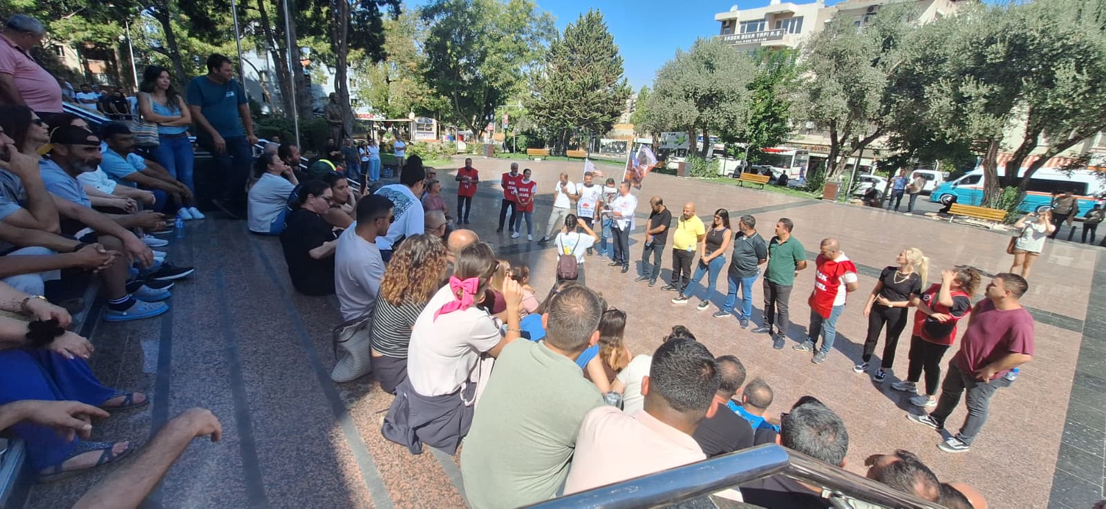 Açıklama yapan Genel İş İzmir 6 Nolu Şube Başkanı Değer Yıldız “Bazı birimlerde müdürlerde işçileri sürgünle tehdit ederek korkutacağını düşünüyor. Bizim olduğumuz yerde, kanuna uyduğumuz yerde kim haddini aşarsa, kim üyelerimizi tehdit etmeye kalkarsa biz onlara gerektiği cevabı vereceğiz. Bugün mücadelemizin üçüncü günü. Herkes bizim yaptığımız eylemi konuşuyor. Şu anda bizim yaptığımız eylem Anayasal güvence altında olan bir eylem. Bu eylemden dolayı kimse işten çıkarılamaz, yevmiyesi kesilemez.” dedi.