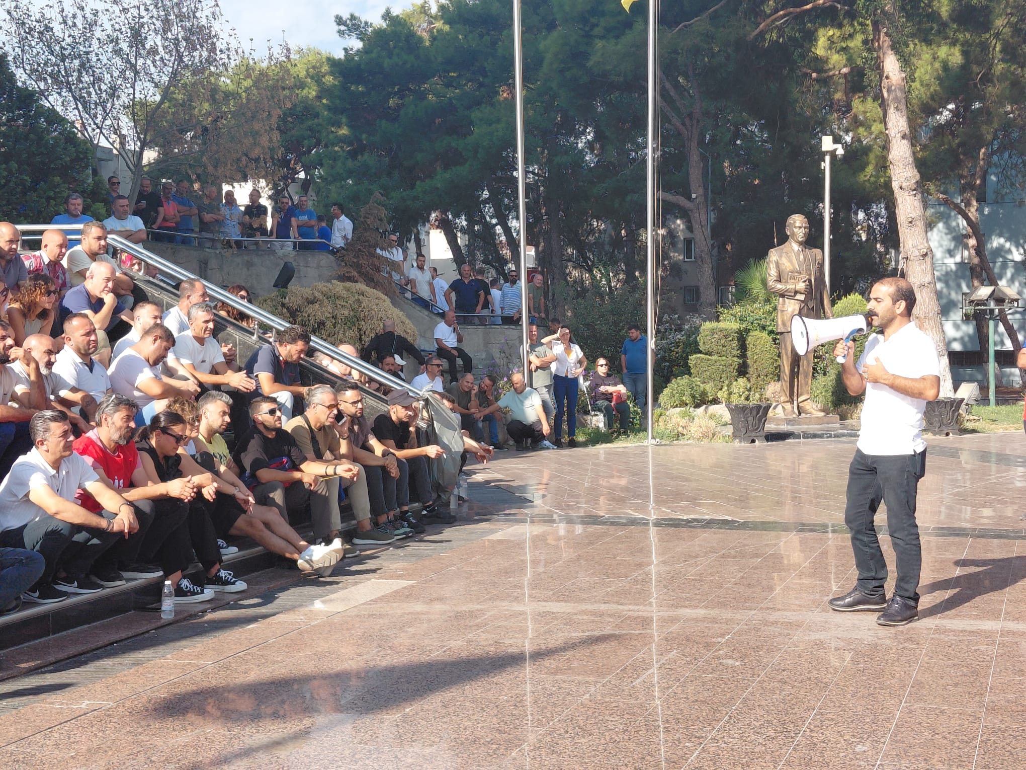 Başkan Görkem Duman devam eden eylemlerle ilgili “Eyleme başladıkları gün toplam alacakları iki maaştı. Dün gece saat 00.00 itibariyle maaşların, 1.84’ü yani yüzde 85’ini yatırdık. Yüzde 15’lik bir alacakları kaldı. Onu da 19 Eylül’e kadar yatıracağımızı beyan ettik. Ona rağmen kendileri eyleme devam edeceklerini söylediler” dedi.