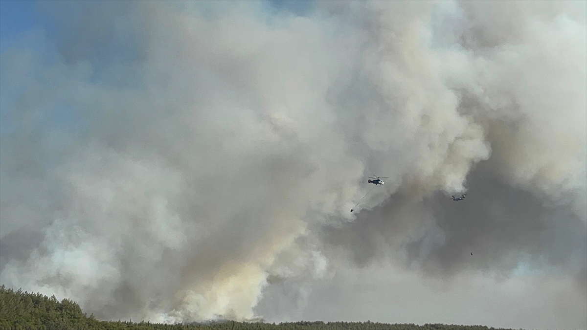 Bölgede etkili olan rüzgar nedeniyle ekipler çalışmalarını güçlükle sürdürürken yangına vatandaşlar da destek veriyor.