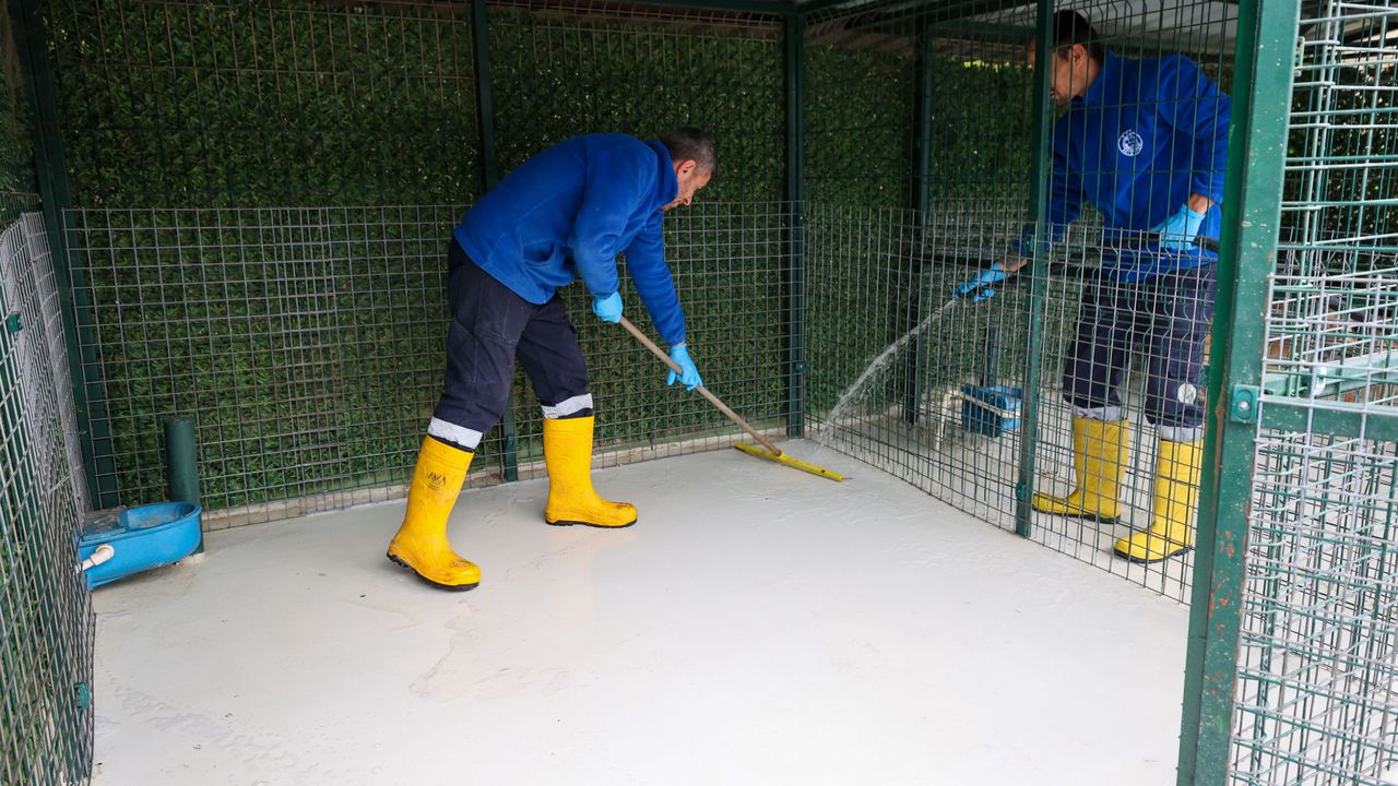 Merkezde hijyen standartları en üst seviyede tutuluyor. Temizlik sürecinde can dostların konforu gözetilerek hayvanlar geçici alanlara alınıyor. Ardından padoklar özel dezenfektanlı köpüklerle detaylı şekilde temizleniyor, tüm yüzeyler fırçalanarak arındırılıyor. Köpükleme işleminin ardından alanlar durulanıyor, ortak kullanım alanları ve kanallar tazyikli suyla temizleniyor. Mama ve su kapları ise tek tek yıkanarak dezenfekte ediliyor.